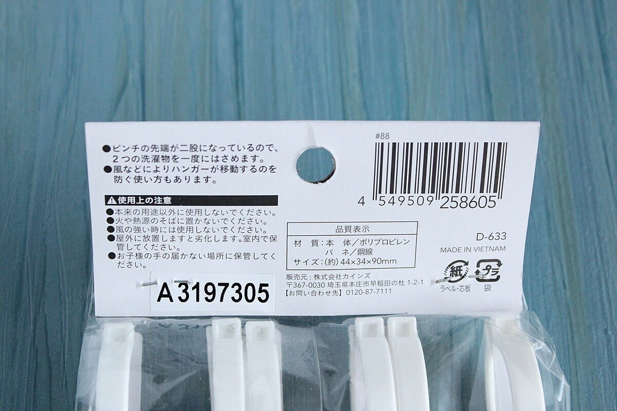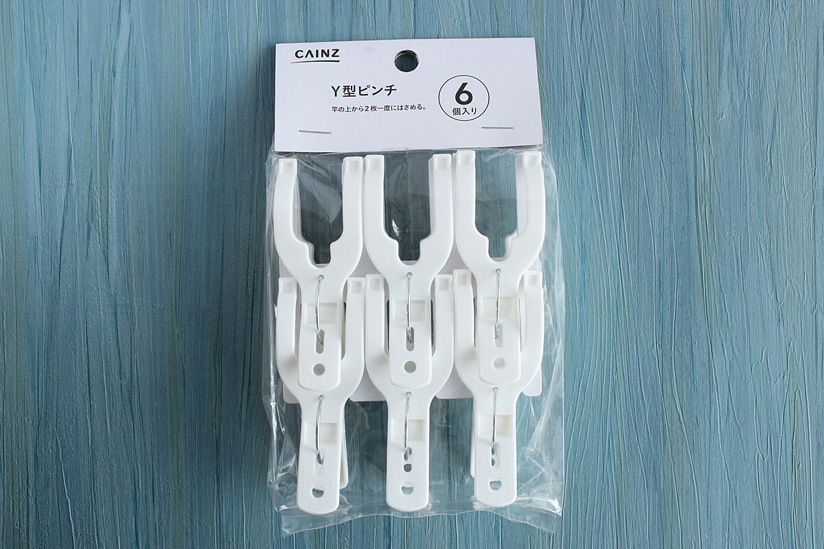 最初に紹介させていただく「Y型ピンチ」は、100円ショップでも同じような素材、そして同じような個数入りで販売されていますが、カインズは税込み価格!98円ですので100均よりもお得です!