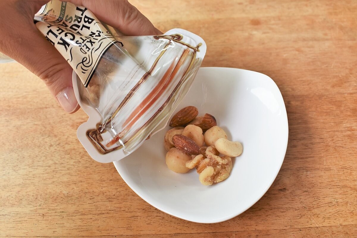 また、先ほど紹介した「黒トリュフ塩ミックスナッツ」と一緒に食べると、これまた好相性!