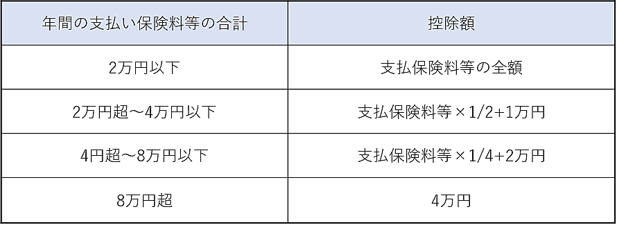 年間の支払保険料の合計:1万円以下 →控除額:支払金額