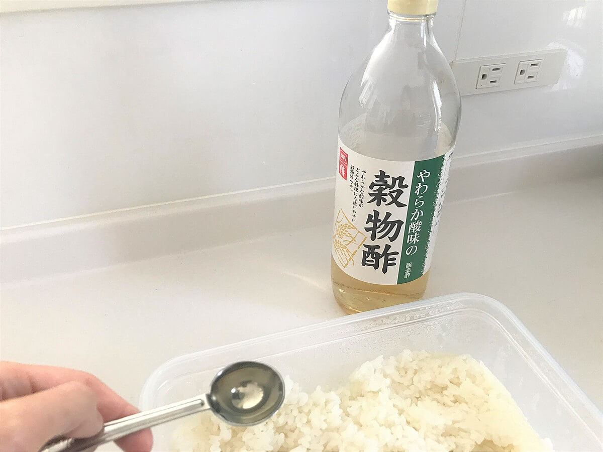 ごはんは3合に対し、小さじ1のお酢を混ぜるといたみにくくなります。