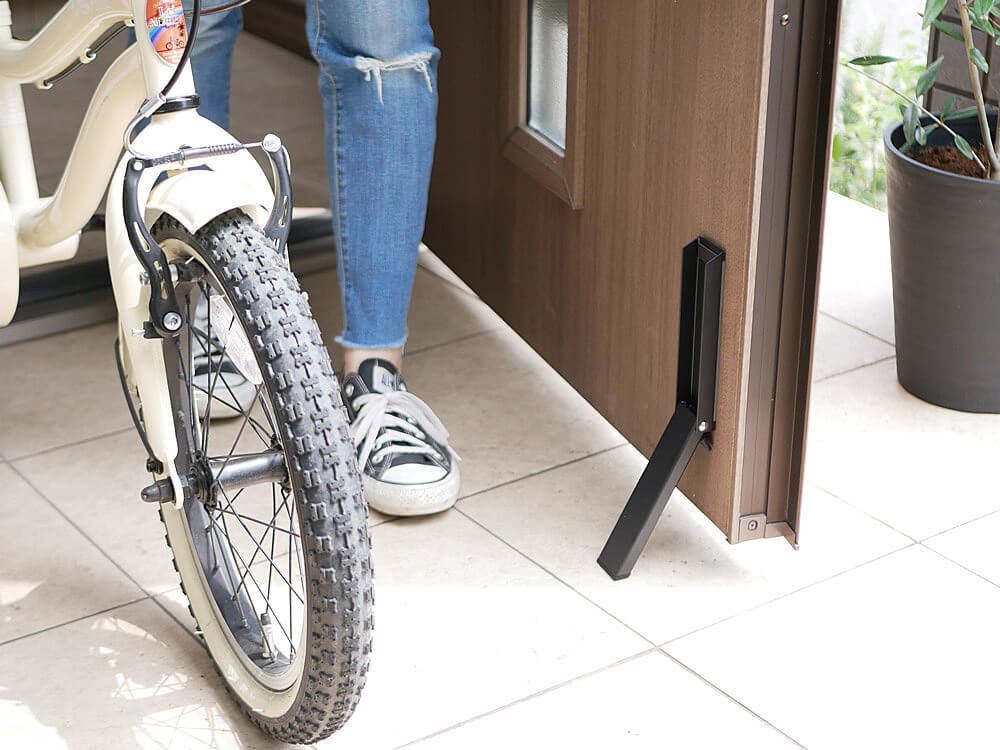 ドアを足で押さえながらの自転車やベビーカーの出し入れ、荷物が多いときの小さい子どもを連れての玄関の出入りは大変なものですよね。