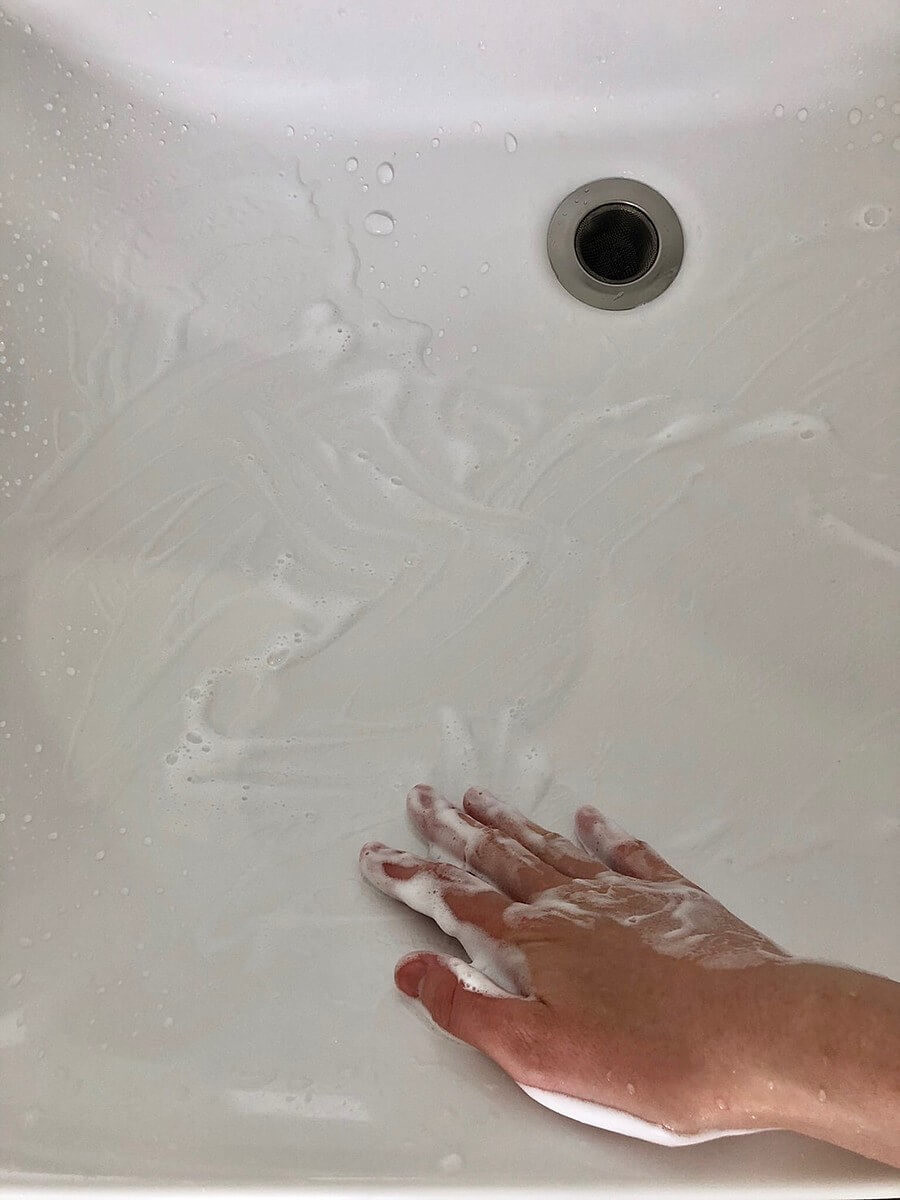 掃除といっても、手にハンドソープをつけて洗面ボウルをそのままゴシゴシするだけ!