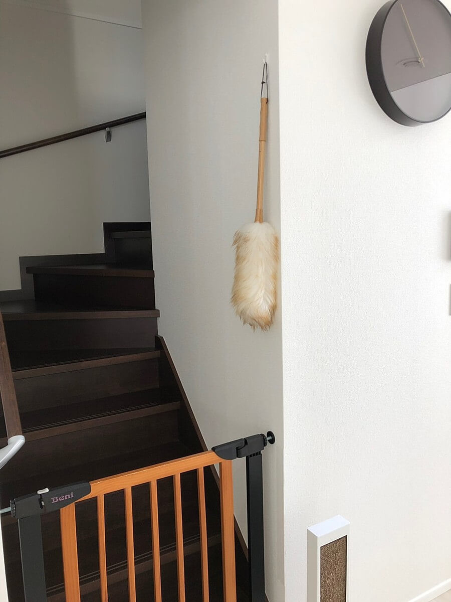 ホコリが気になったら、階段横にかけてあるウールダスターで階段を上るついでに、サッとホコリ取りをしています。