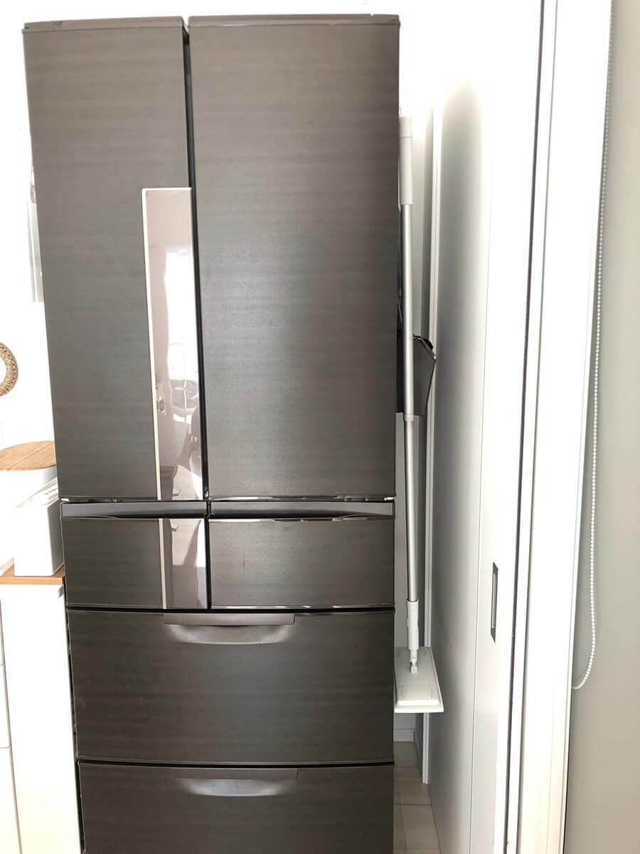 汚れたらパッと掃除できるようにハンディワイパーを冷蔵庫横にかけています。