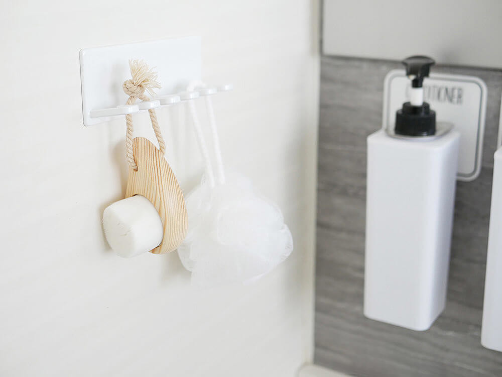 どちらも、こまごましがちなバス小物を引っ掛けて使うことができるので、スペースを有効活用できます。