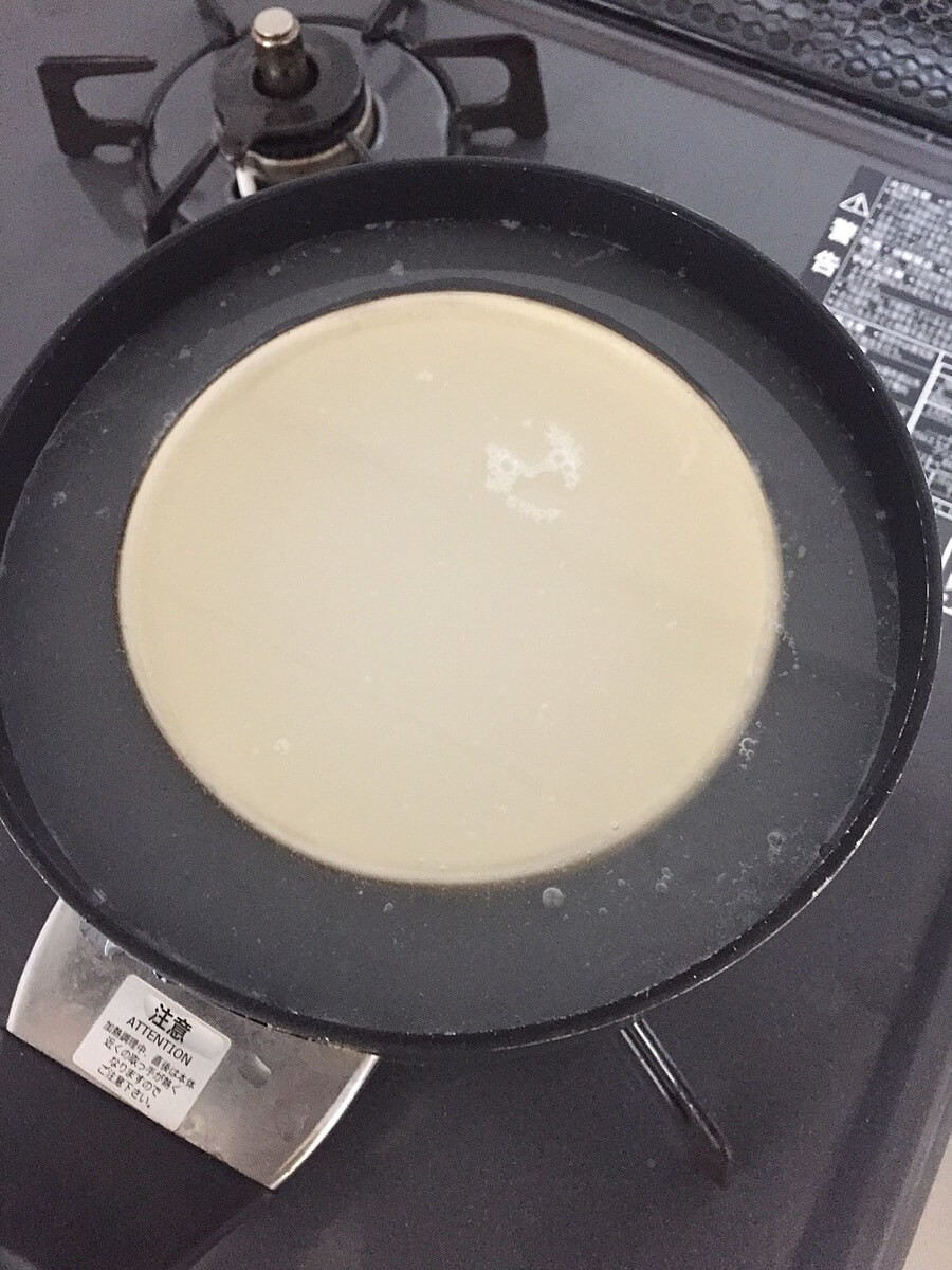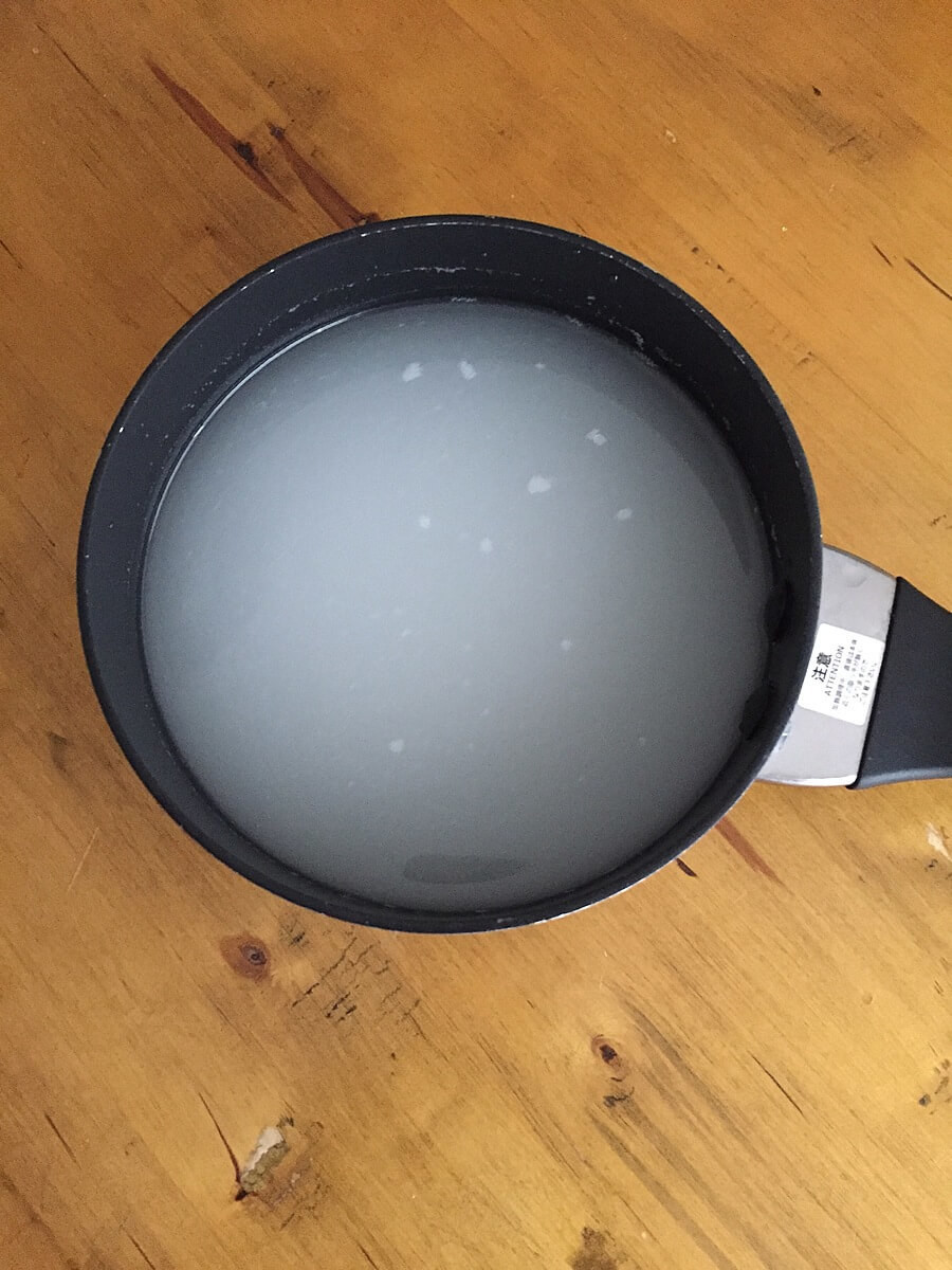 米を研ぎ、その研ぎ汁(白いデンプン質の研ぎ汁)を鍋に入れます。