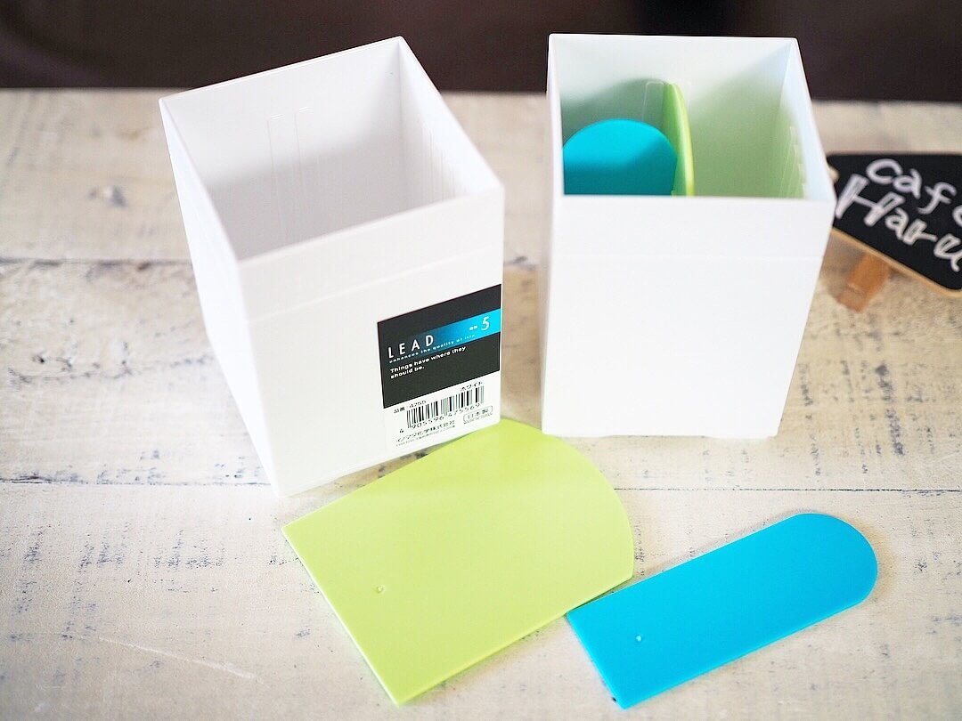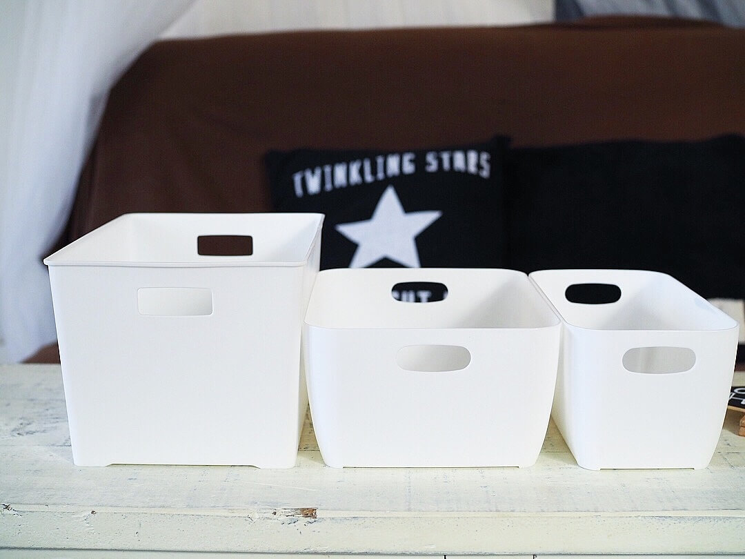 そこで今回使ったのが、収納ボックスコーナーにある無地ホワイトでシンプルな形の「ライナーケース」と「カトレケース」です。