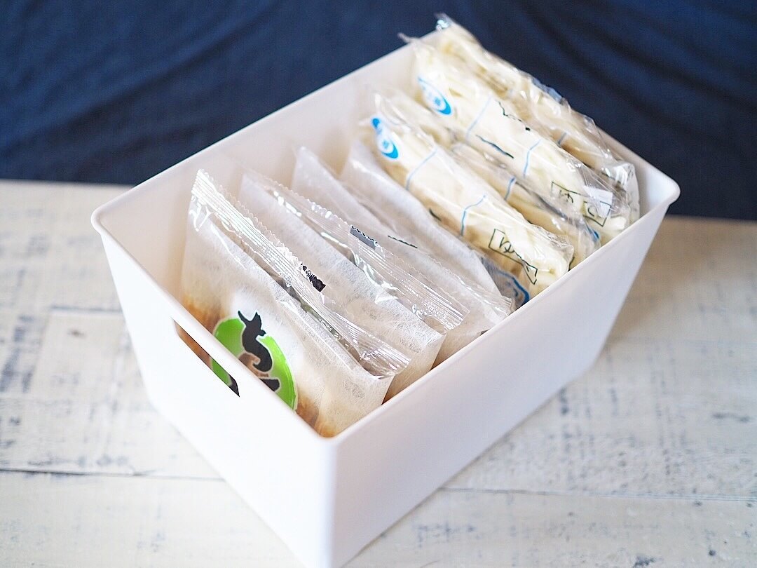 またジャムやヨーグルトなどの「朝食で使うもの」など、ジャンル別にひとまとめにしておけば、そのまま食卓に出せるので準備の時短にも♪