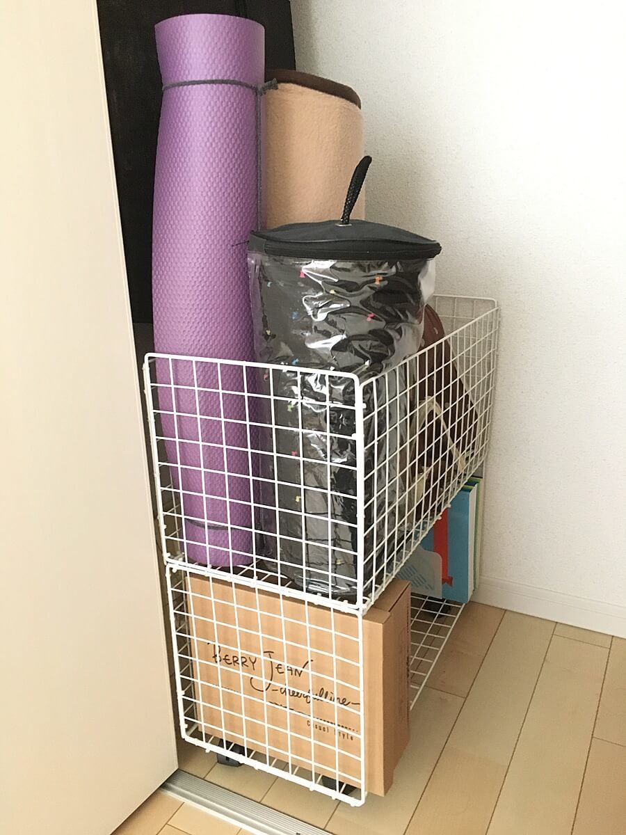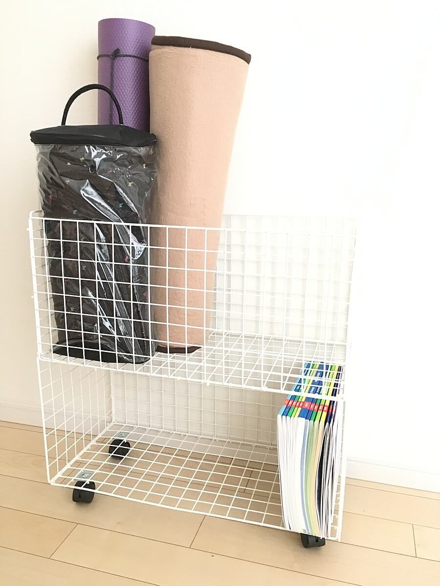 ワイヤーとニトリのボックスを使って、掛ける収納をDIY。