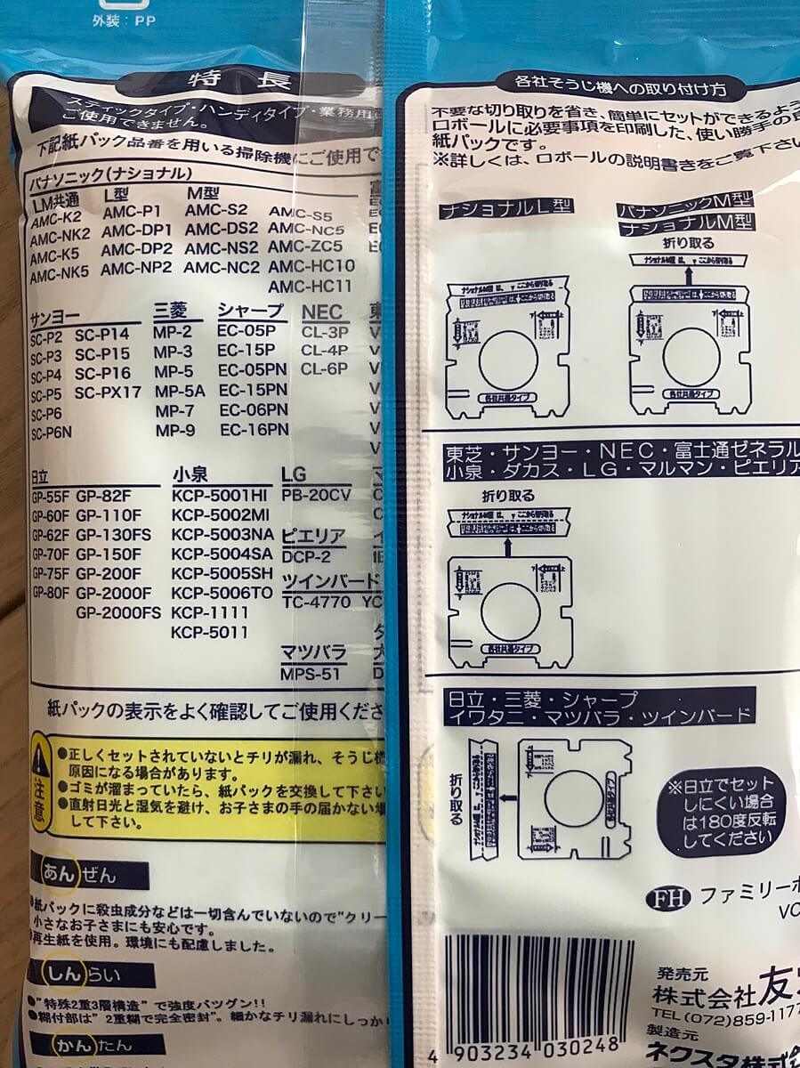 電気屋さんに売っている、専用の高価な紙パックでなくても、わが家はこれで充分対応できています!