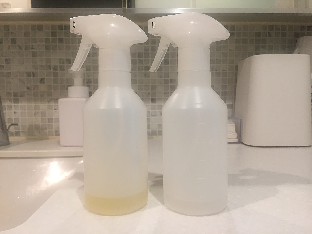 シンプルでおしゃれなスプレーボトルは、100円ショップでも購入できますよね。