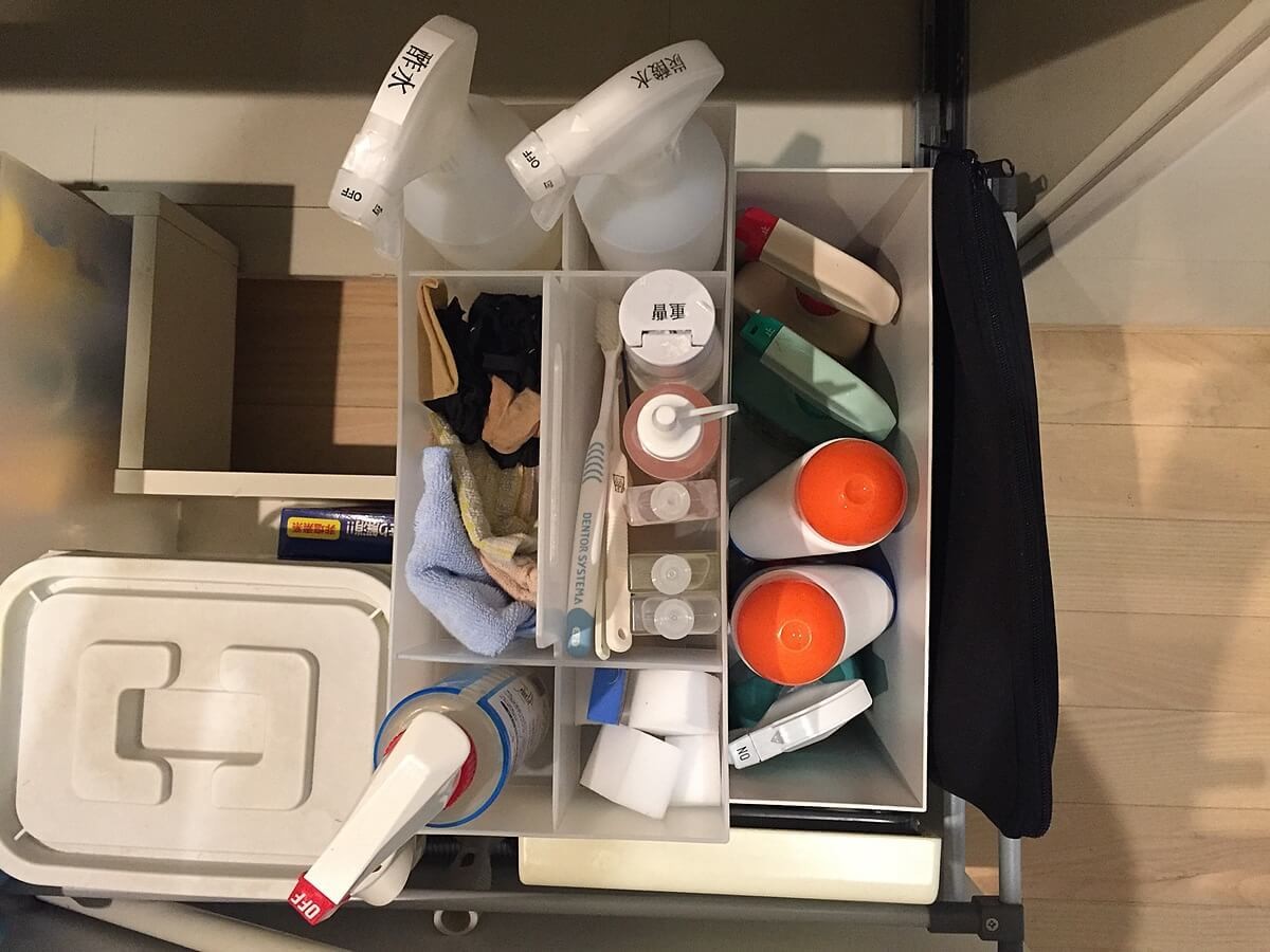 それぞれの箇所に、それぞれに適した洗剤やグッズを入れておけば、出し入れの手間も最小限に省けます。