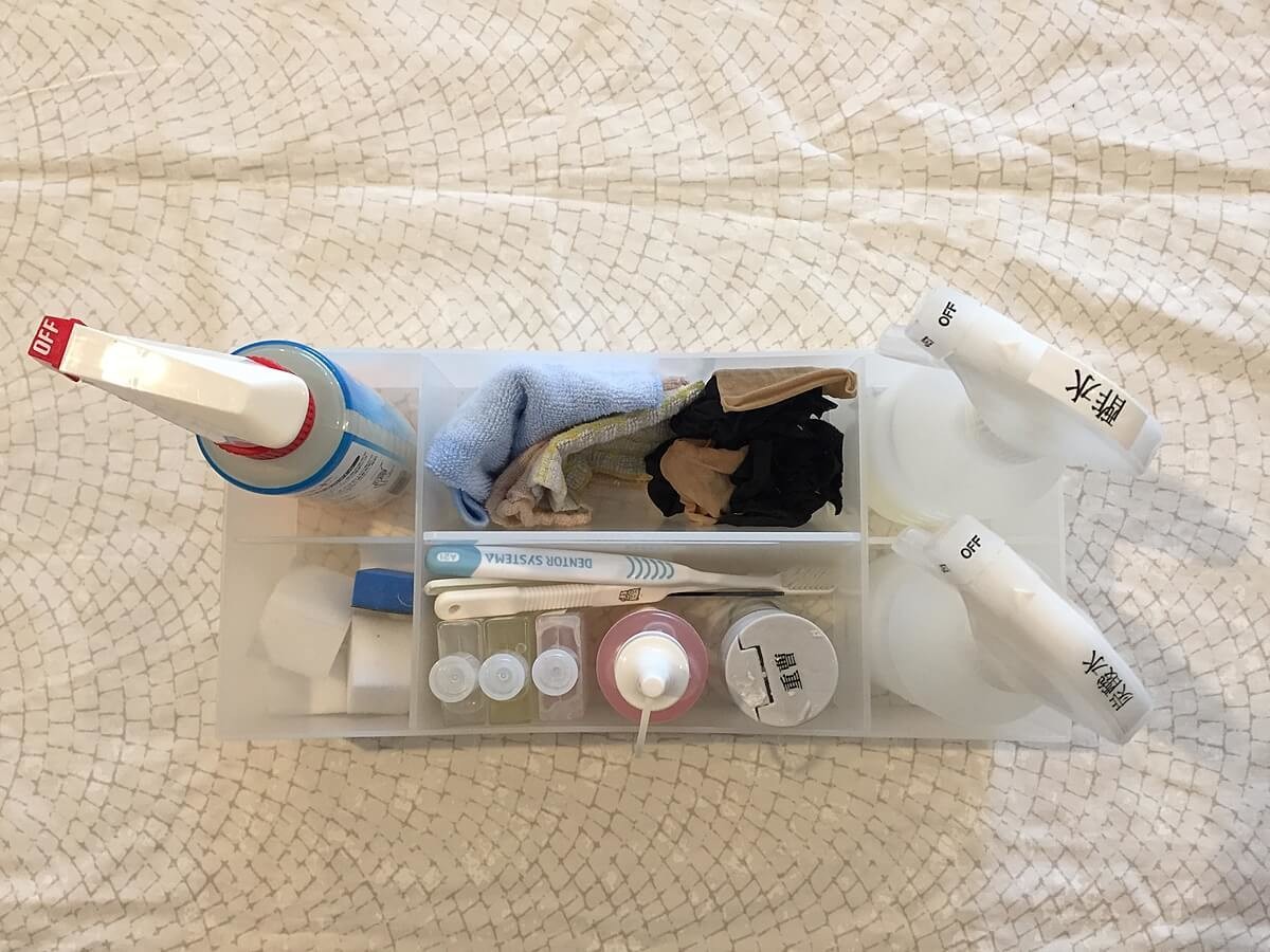スペースを無駄にすることなく、ポリボトル・スプレー付きが2本入りました。