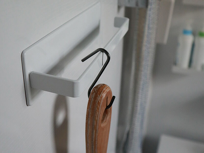 玄関では傘やお掃除グッズの引っ掛け収納にも。