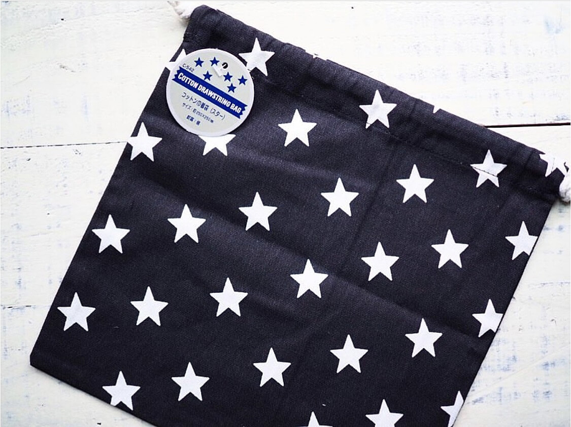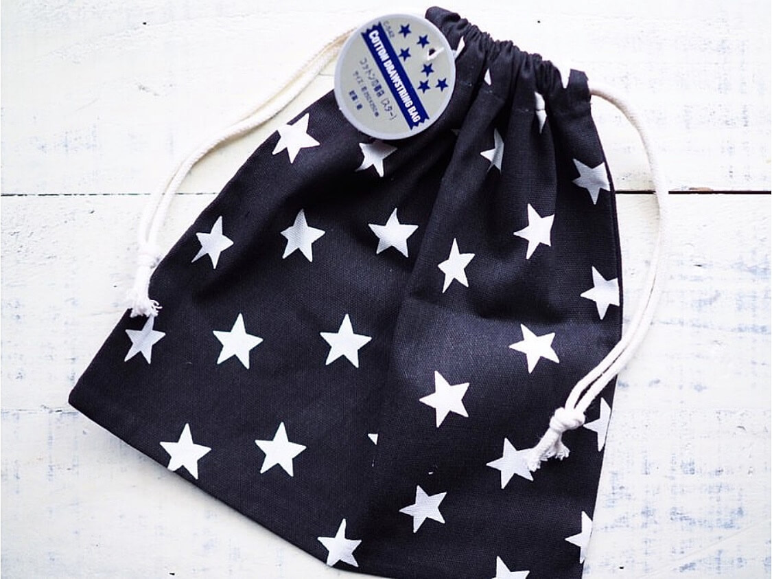 続いてご紹介するのは人気のモノトーン×スター柄がおしゃれな「コットン巾着袋スター」です。