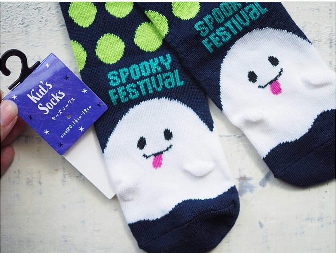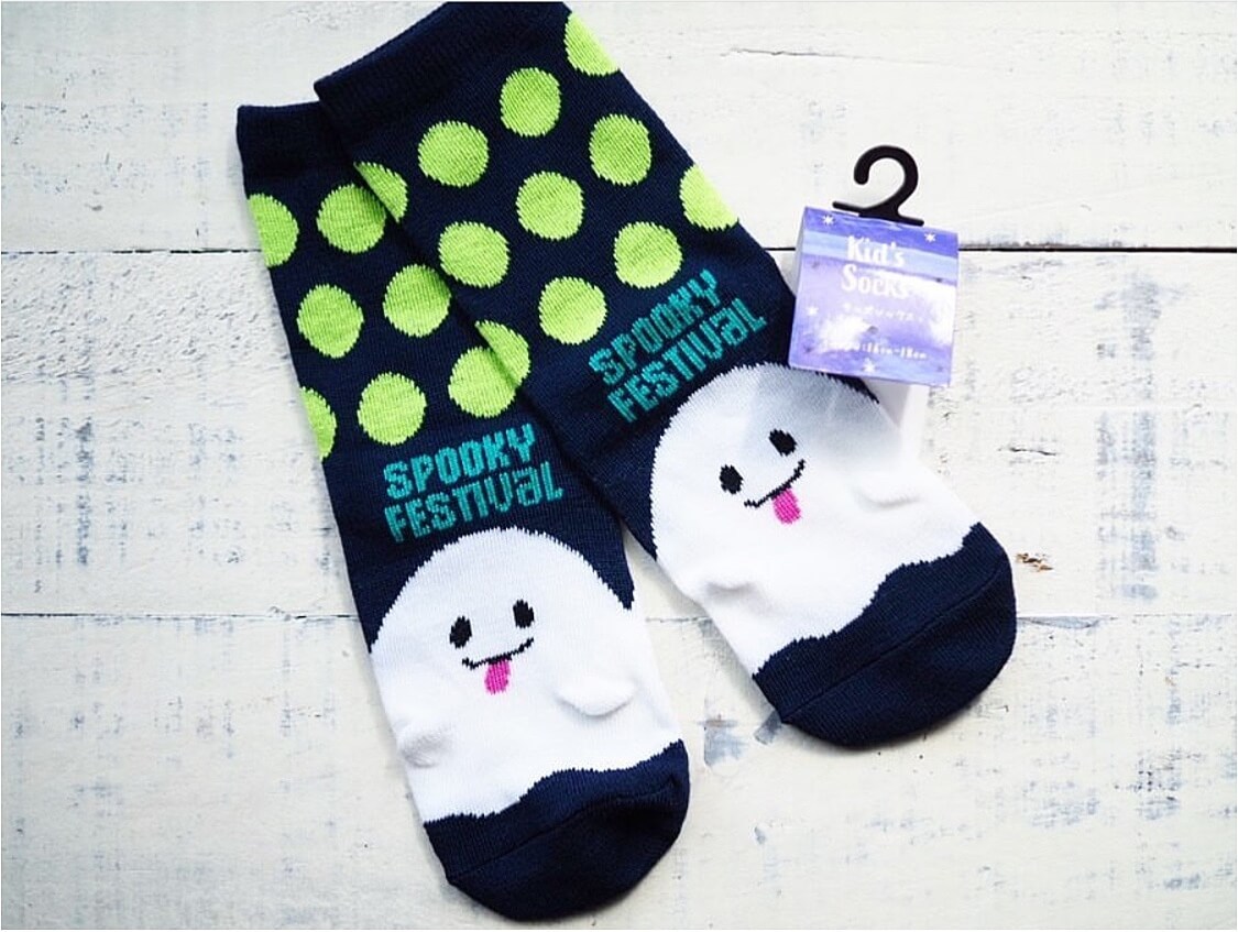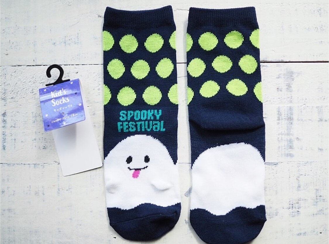 最後にご紹介するのは、オバケとドット模様がキュートなハロウィン柄のキッズソックスです。
