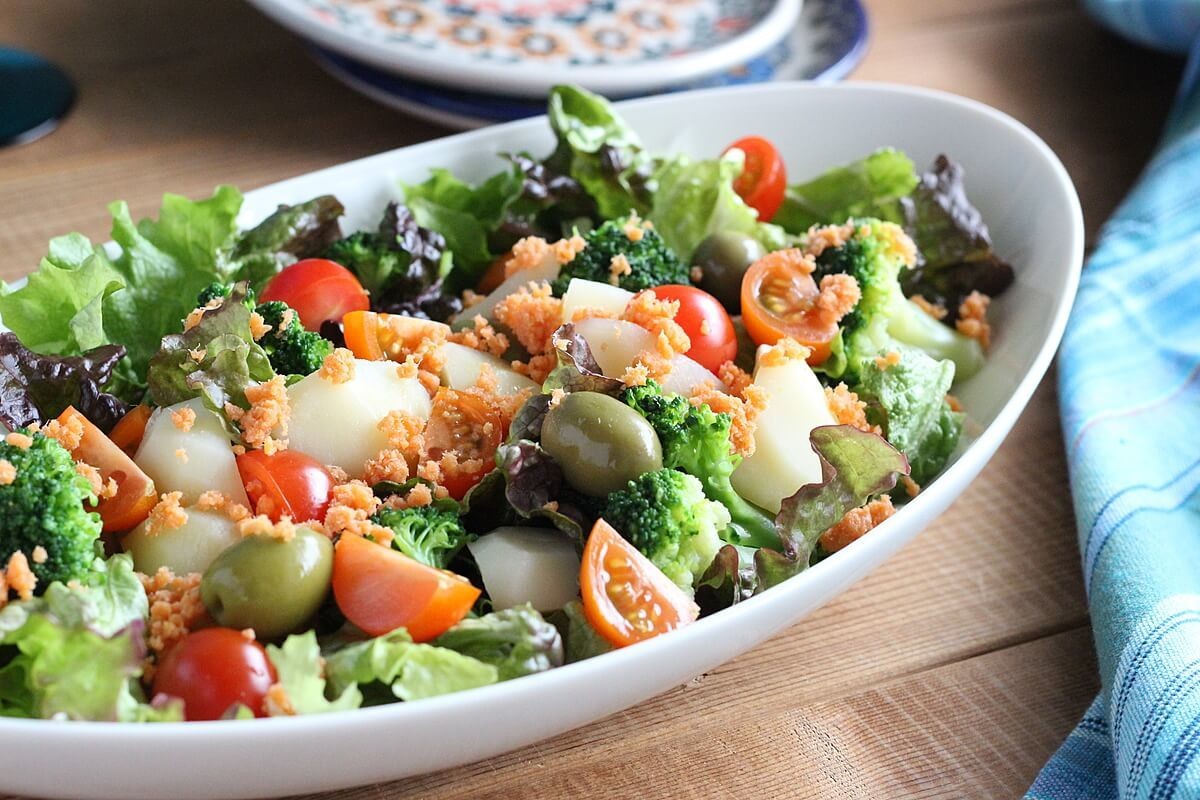 いつものサラダにも、ツナではなく、鮭フレークをかけると旨みアップでとても美味しい!