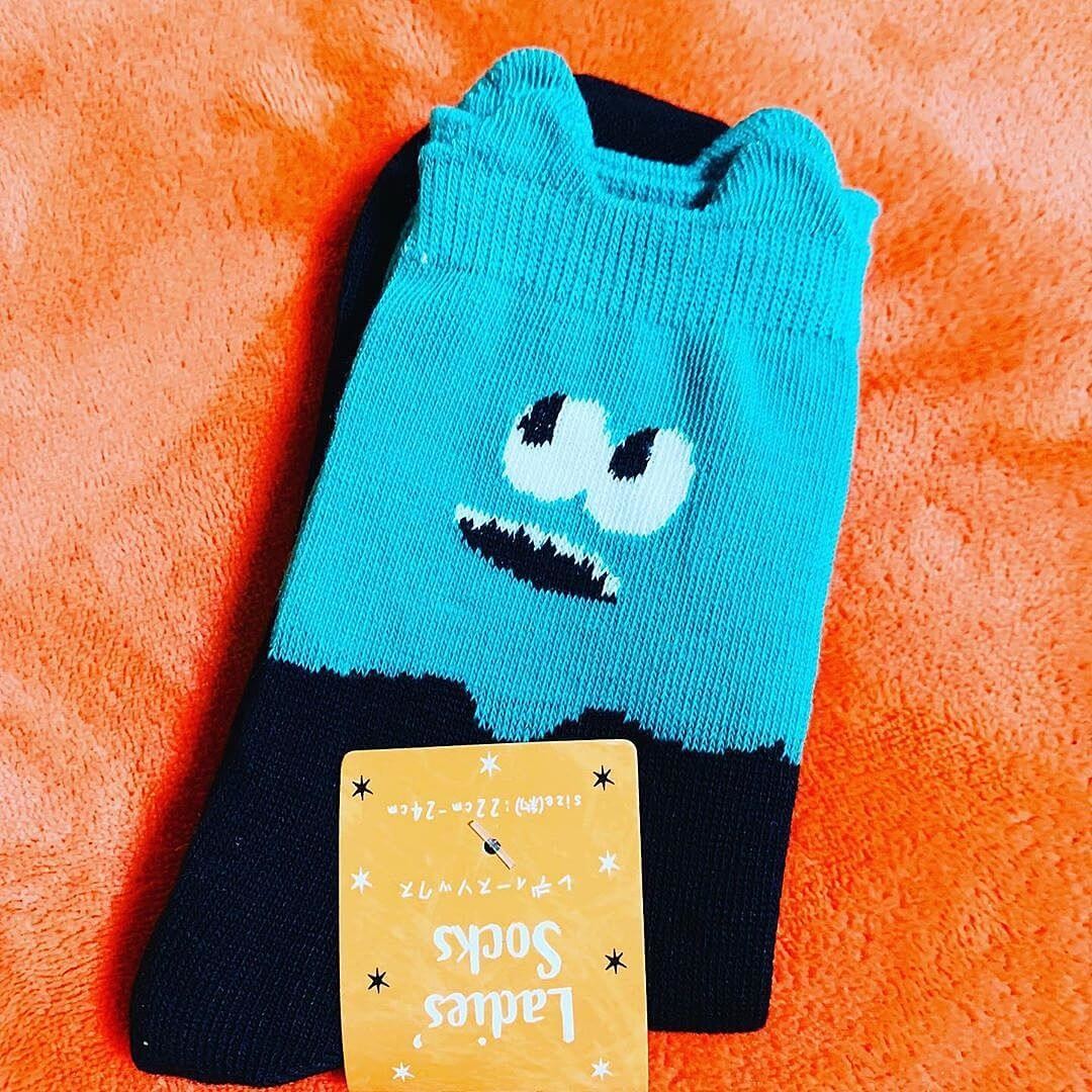 表情がおちゃめなモンスターソックス。仮装する人もそうでない人も、ハロウィン気分が楽しめます。耳付きなのもとってもかわいいですね!