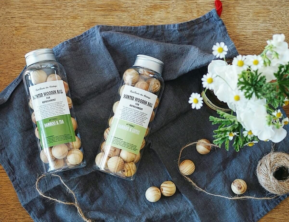 一見するとただの木のボールに見えますが、実はこれ、香りが楽しめるフレグランスボールなのです。