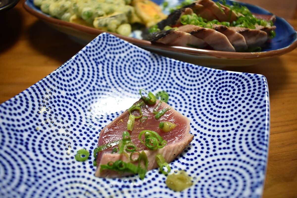 鰹のたたきは「わさび+しょうが+にんにく」が一番ですね。