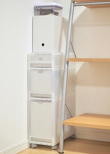 このサイズは幅が薄いので、隙間に入るのでいいですね!好きな高さのを組み合わせればぴったりの収納も作れます。立てて入れると取り出すのもラクです。