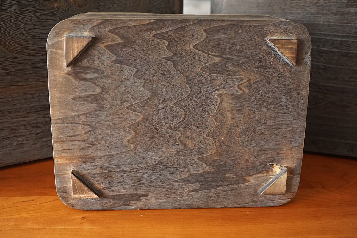 重さは天然木にしては軽いほうで、底面はスタッキングがしっかりできるように突起がついています。