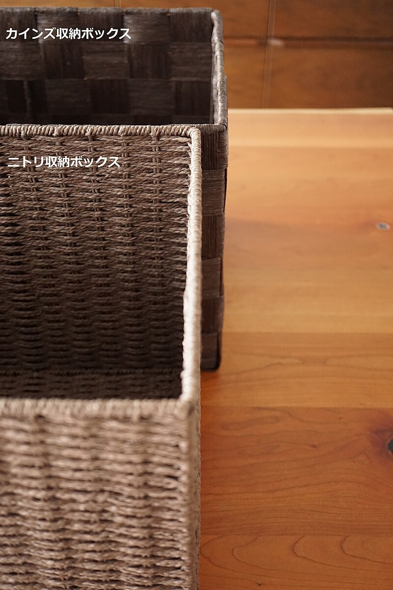 高さ・奥行は同じですが、カインズの収納ボックスは幅が2cmほど大きくなるので、 ニトリなどの一般的なサイズのカラーボックスに収納することはできません。 購入の際にはご注意くださいね。
