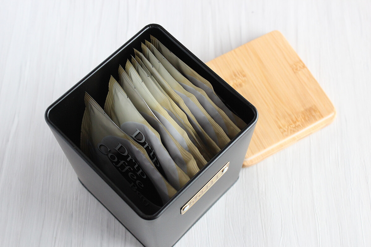 ドリップタイプのコーヒーを入れるとサイズ感もピッタリで、気持ちよく収まりました♪