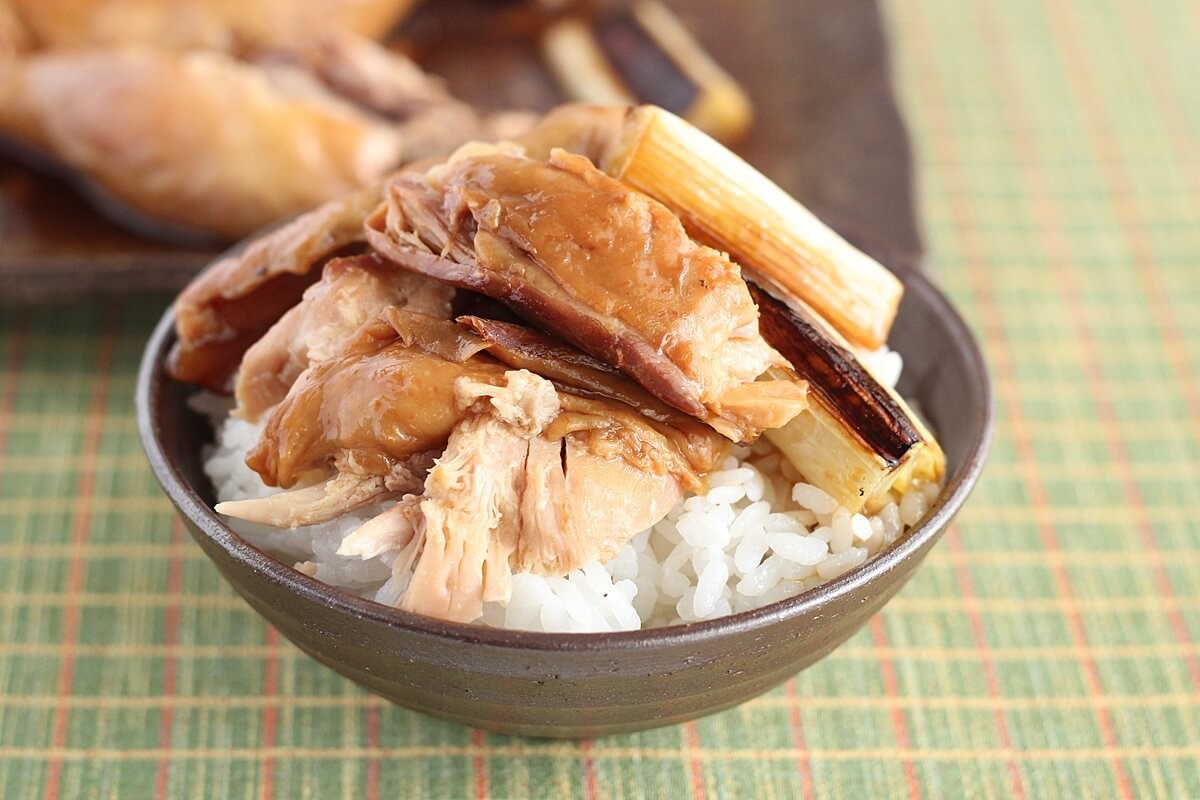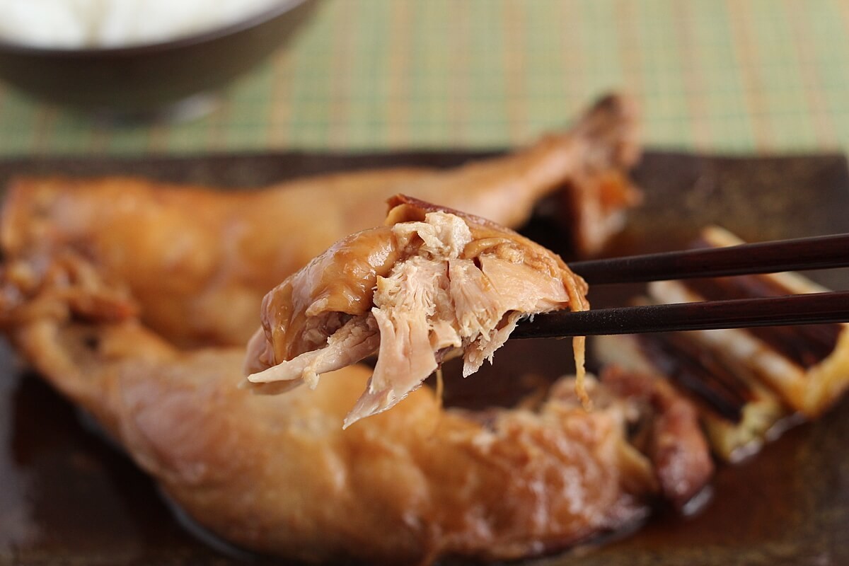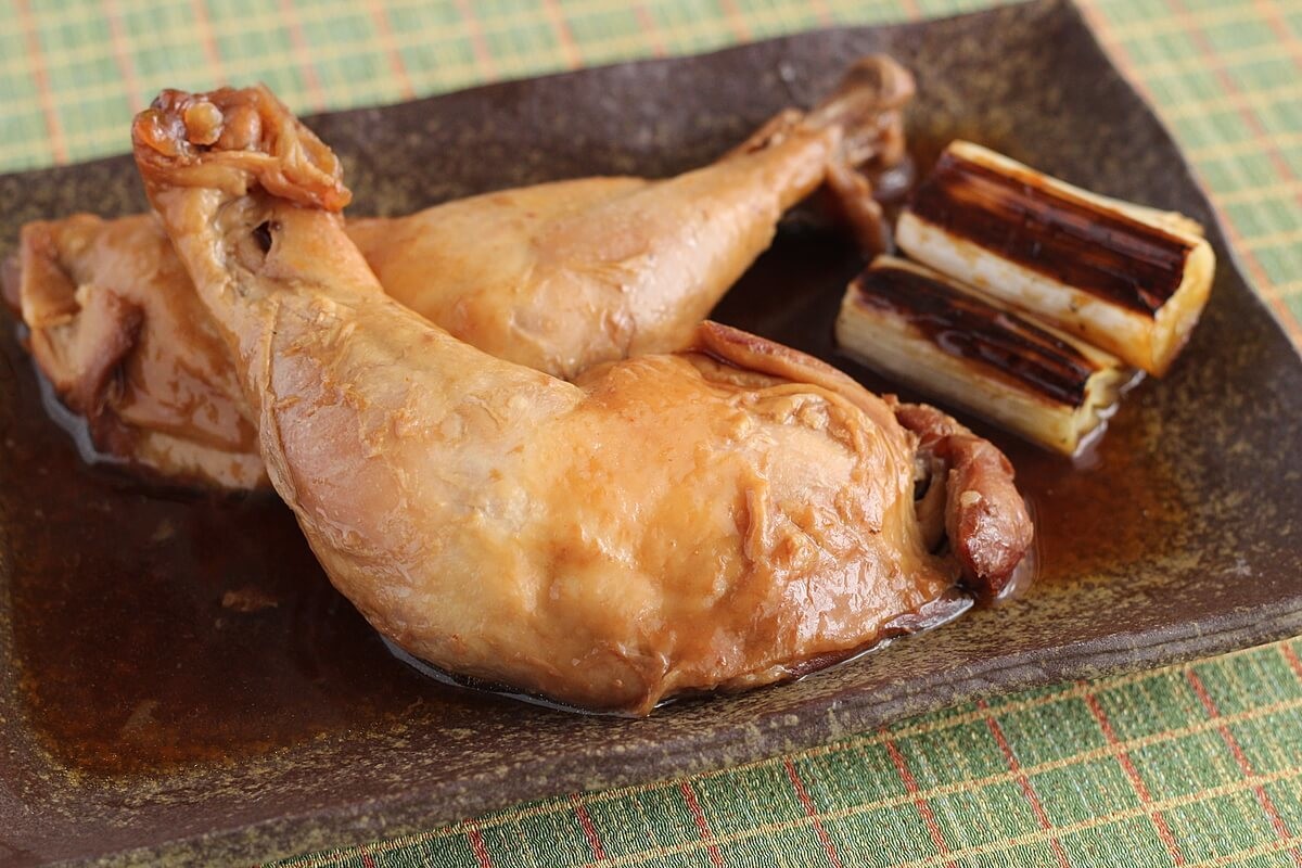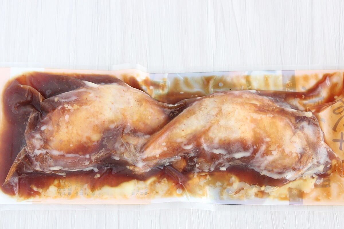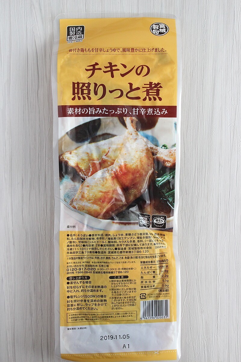 “骨付き鶏ももを甘辛しょうゆで、風味豊かに仕上げました”と、あります。