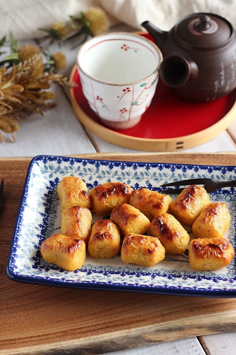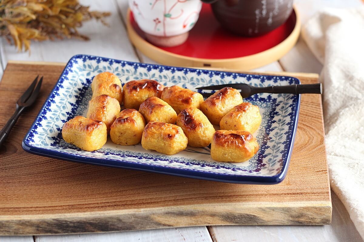 卵黄を塗りオーブントースターで焼いたスイートポテトは、焼きたてはとてもやわらかく、持つと崩れてしまいそうなくらいです。
