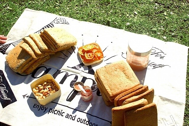ちなみにこちらのレジャーシートは、先ほど紹介したダイソーのレモン柄です。