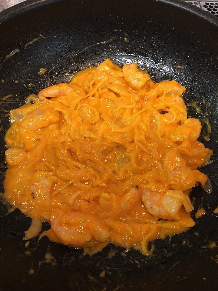 ソースに海老のうまみがたっぷり凝縮されているので、具がなくても、「ご飯にかけて。チーズをのせて焼くだけ」で美味しく食べられるますよね。
