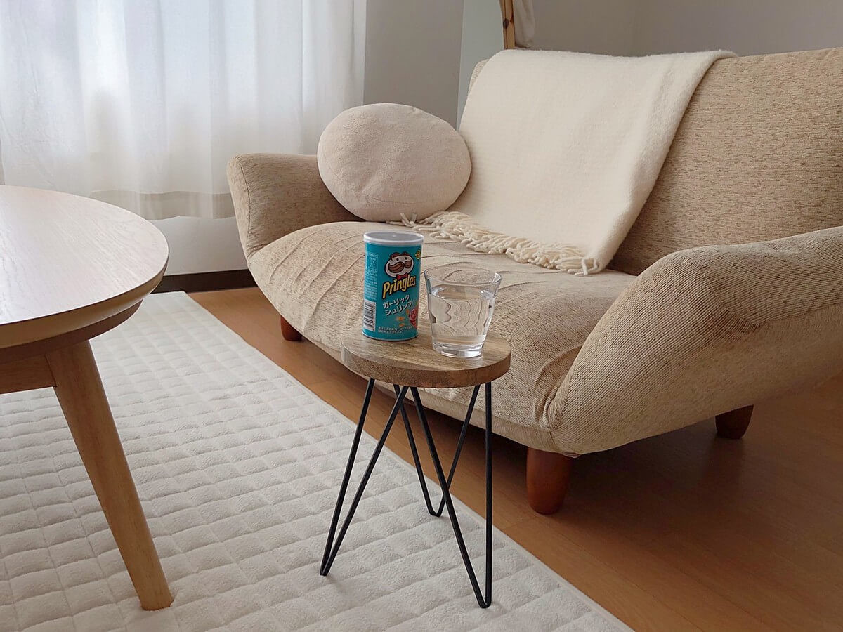 ソファ横でサイドテーブルとしても使えるサークルスタンド。