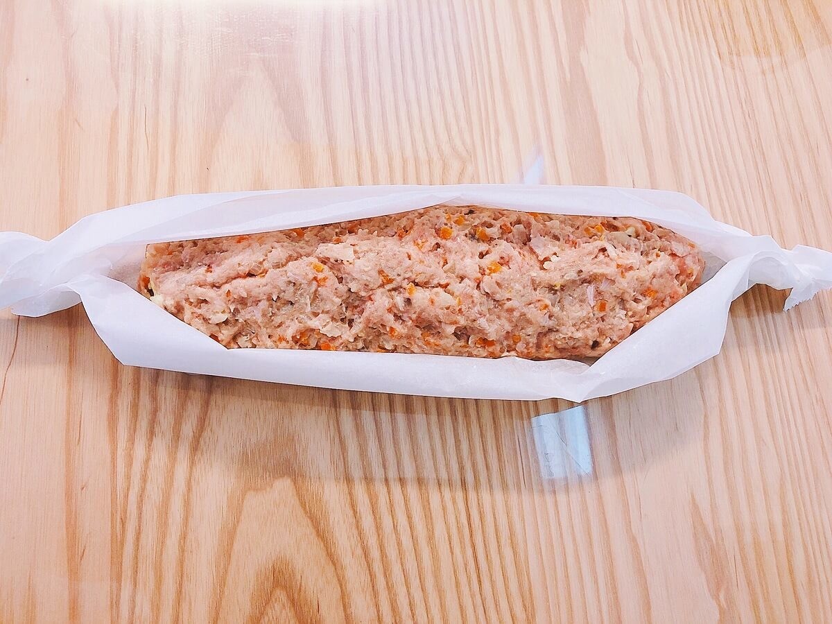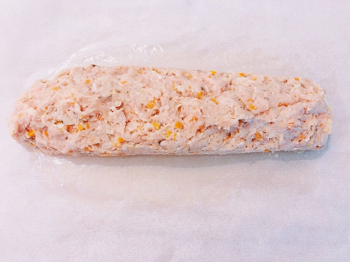 ⑦ クッキングシートで、しっかり巻いていきます。