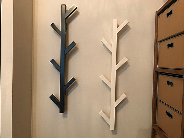 縦に二つ繋げた状態で壁に取り付ければ、長い木のようになり、さらに収納力が増します。