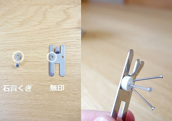 三方向にくぎが刺さっているので、既存の無印良品のピンよりも、しっかり刺さっている感じがします!