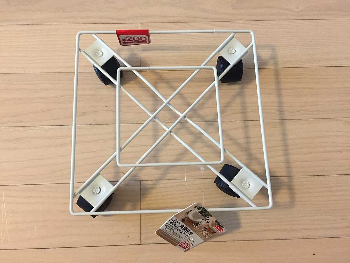 角型花台とラックを合わせて合計300円で、こんなに簡単なキャスター付きラックができてしまうのがダイソーの魅力ですね!