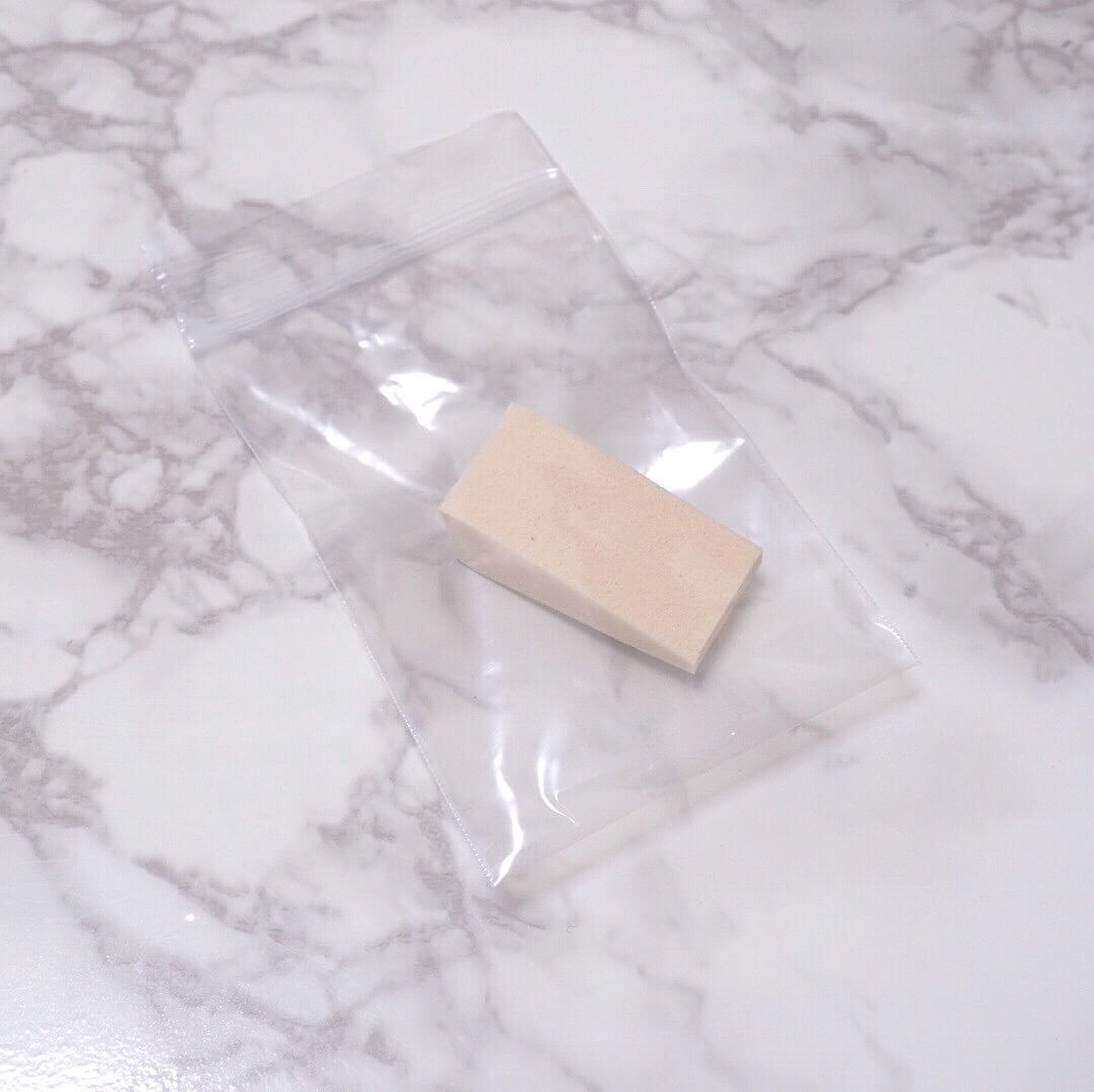 ちなみに私はこのマツキヨスポンジをメイク直しの際に使っているのですが、このように100均などで購入できるジップ付きの小さめの袋に入れて持ち歩いています。
