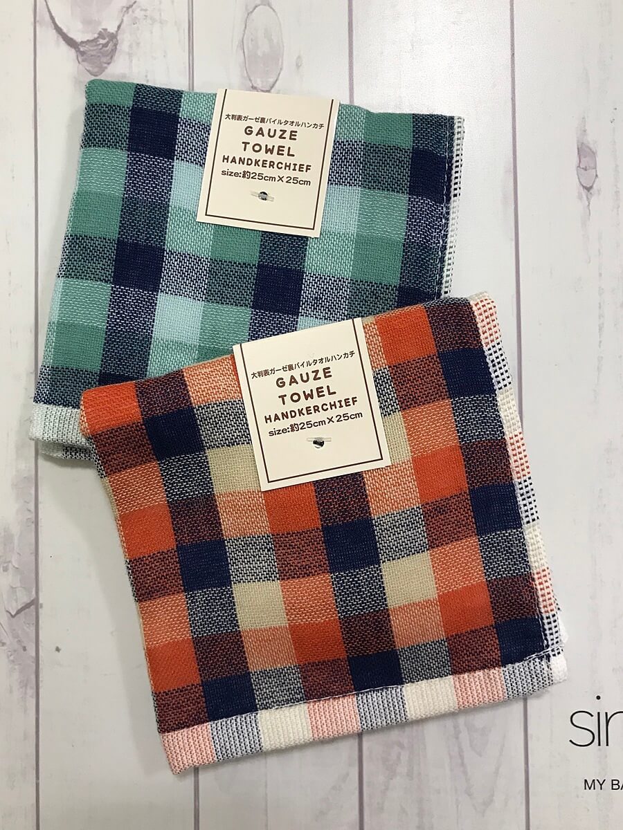セリア②オールドアメリカンな雰囲気が好き♡チェック柄「ガーゼハンカチ」