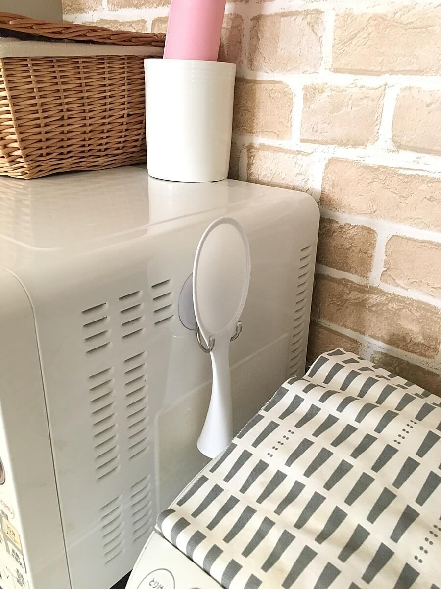 しかし、炊飯器の側面についているしゃもじ置き場は分かりづらいらしく、しゃもじがそのまま棚の上置かれていることが増えました。