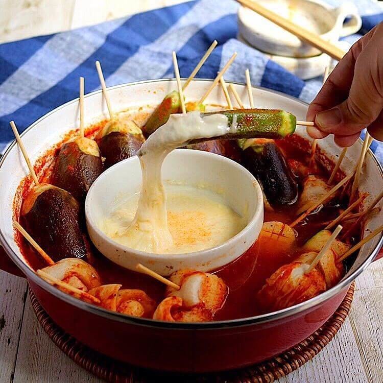 @ikura888さんが考えたのは、チーズを自分の好きな量だけつけて楽しめる「チーズフォンデュ風」の鍋!