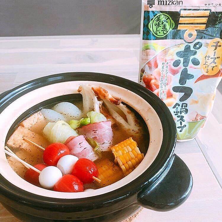 「白玉と野菜の他に、海老やホタテを入れて海鮮料理風に見立てたポトフ鍋なので、とろけるチーズだけでなく、刻み海苔も入れてみたら味がまたひとつ変化しておいしかったです」(@wasure_nagusaさん)