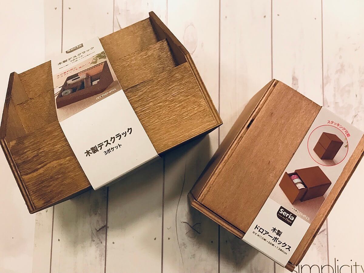 セリアには、写真左のようなラックタイプの木箱、写真右のような引き出しタイプの木箱もあります。