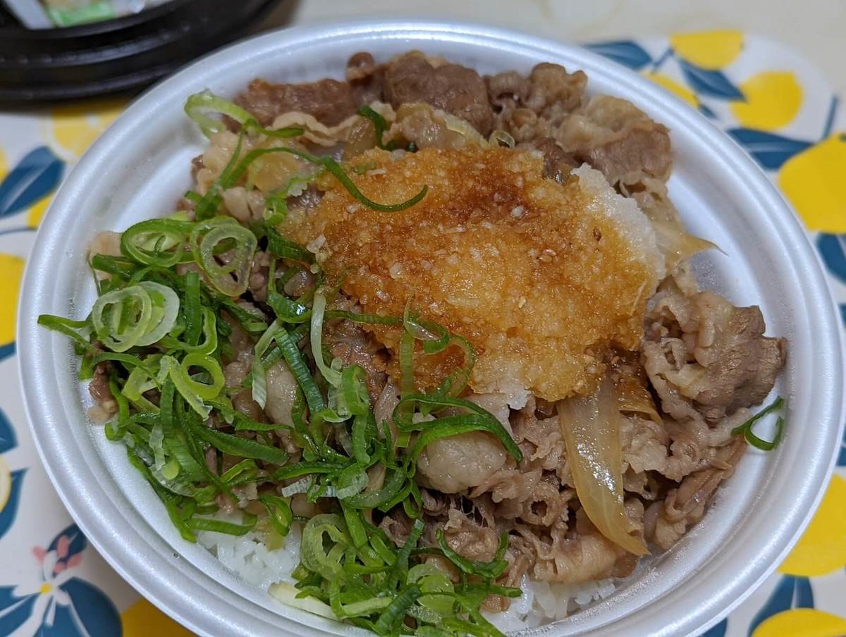 松屋の定番「牛めし」に、小口切りにしたたっぷりの青ネギとピリ辛なコチュジャンベースの特製タレ、半熟玉子がのっています。ネギのシャキシャキとした食感と牛めしが相性抜群な逸品です。