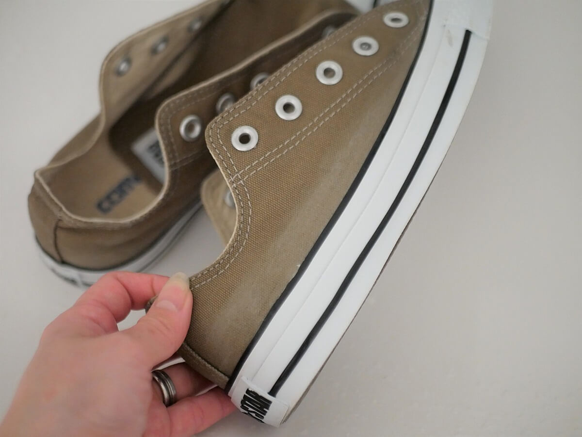 汚れが目立つ白のソール部分、ここは汚れがつきやすく汚れがつくと靴自体が汚く見えてしまいますよね。
