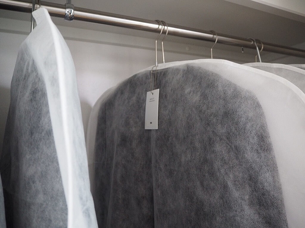 クリーニングをしたあとも、ビニール袋にいれておくと通気性が悪いので衣類カバーをかけるのがおすすめです。