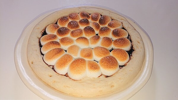 ヨムーノライターのmatsu17さんが作ったのは、チョコソースを塗ったピザ生地に、マシュマロを並べて軽く焼くだけのお手軽スイーツピザ。