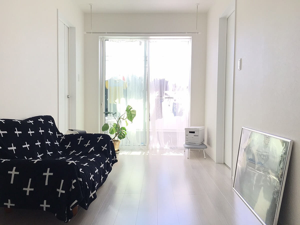 大きなカーテンを乾かそうと思うと、結構場所を取るので、乾かす時は直接カーテンレールに掛けて、乾かすようにしています。