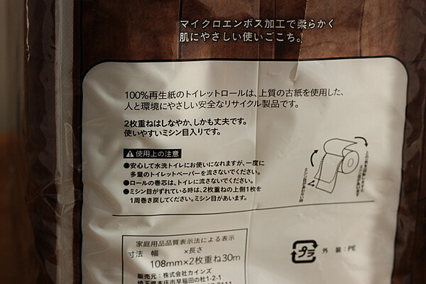 同じ100パーセントの再生紙を使っている他社製品のトイレットペーパーと比べると、10円、20円でも、カインズの方がお値段が安かったです(私調べです)。