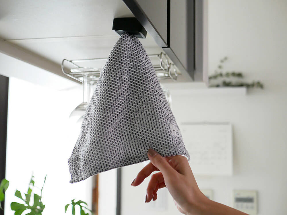 シンク下の引き出しや扉などに差し込むだけで簡単に設置ができるフックタイプ。 水回りにタオルを設置すれば、濡れた手をすぐにサッと拭くことができて便利ですね。